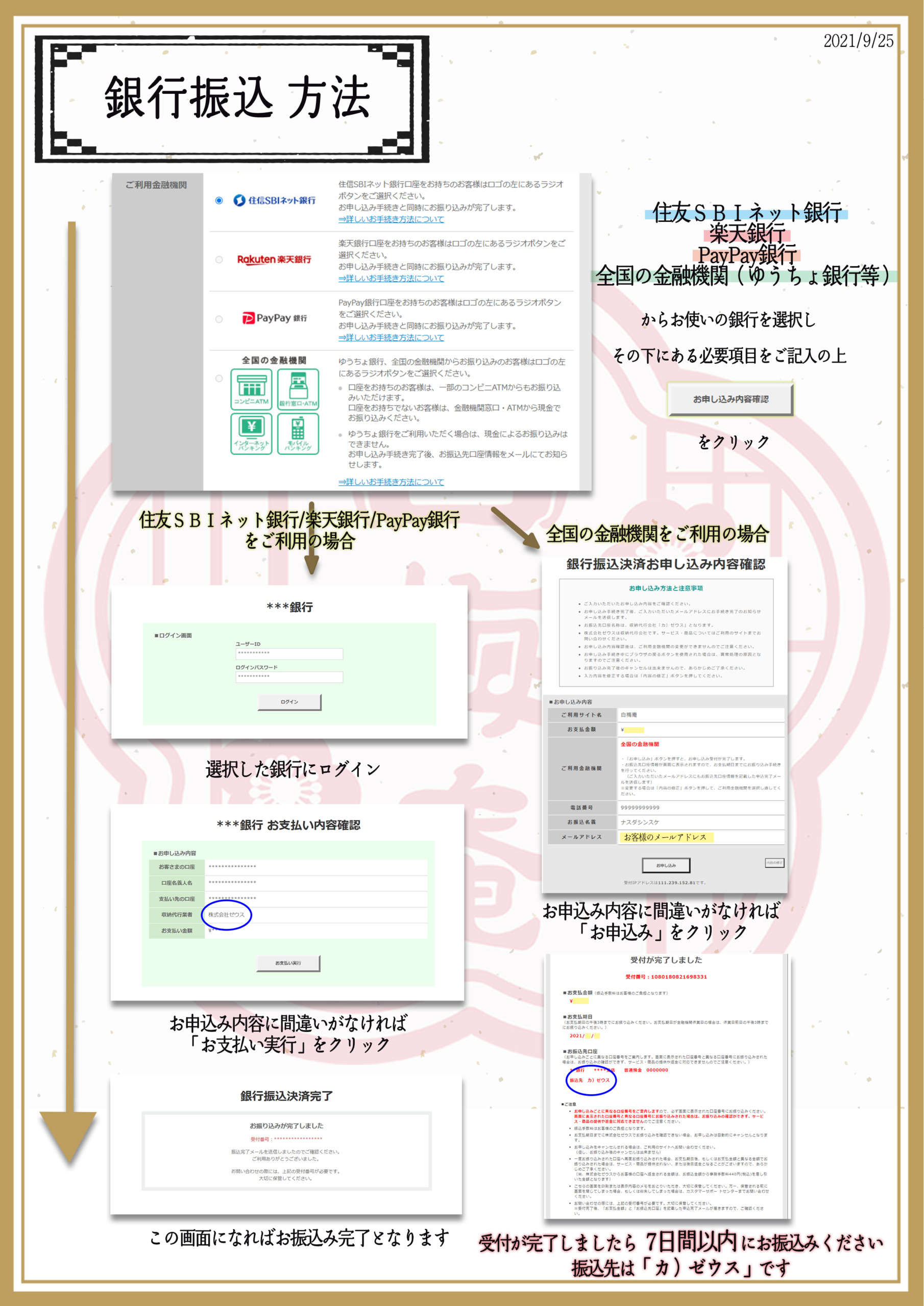 →銀行振込(お振込先口座名称は、収納代行会社「カ)ゼウス」)
